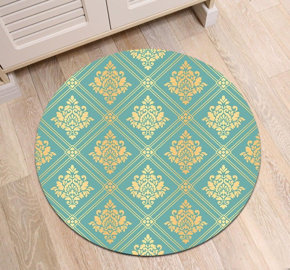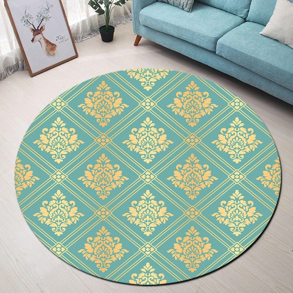 Verleihen Sie Ihrem Lieblingsraum neues Leben mit diesem runden blauen und senf Teppich!