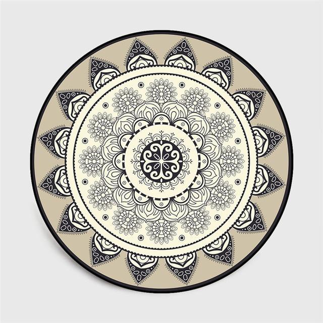 Erfrischen Sie Ihre Dekoration mit diesem runden Schwarzen und Beigen Mandala Teppich!
