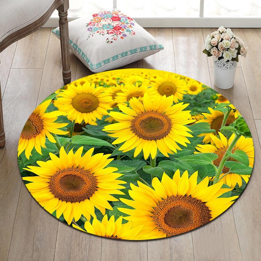 Verschönern Sie Ihren Wohnraum mit diesem runden Sonnenblume Teppich!